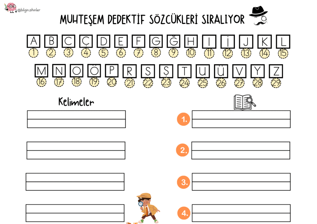 🫶🏻Bir önceki benzer şablonda harflerin alfabedeki yerini şifreli oyun ile öğrendik. Şimdi aynı alfabeyi kullanarak sözcükleri sıralama vakti ⏰ Özellikle aynı şablon üzerinden ilerledim, iki şablonda da kazandırılmak istenen konular birbiri ile bağlantılı👍