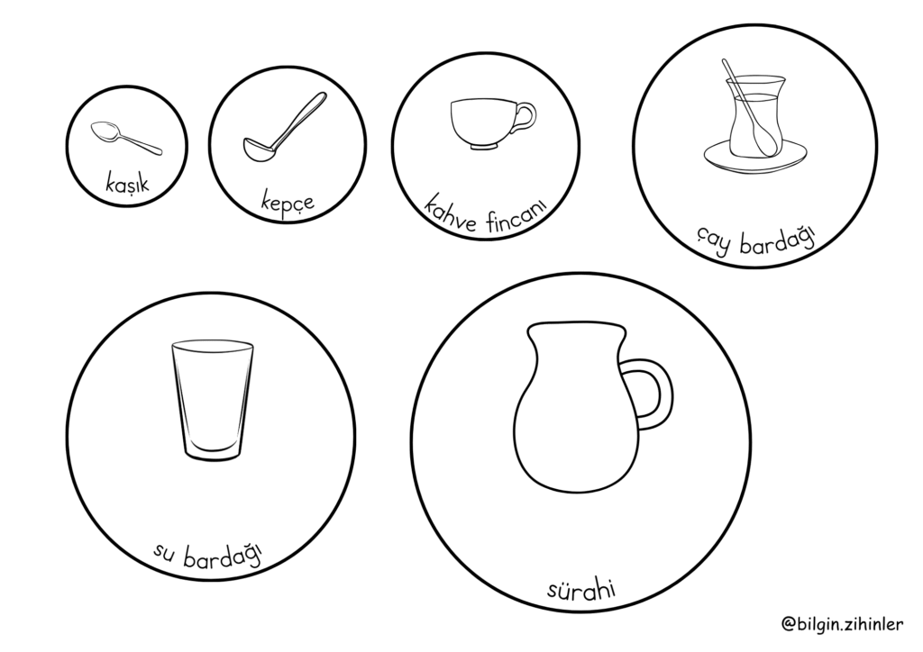 Deftere kaşık, bardak, tencere gibi görseller çizmeleri bu yaşta zor olduğu için bu etkinlik ile birlikte çizim yapmalarınada gerek kalmadı